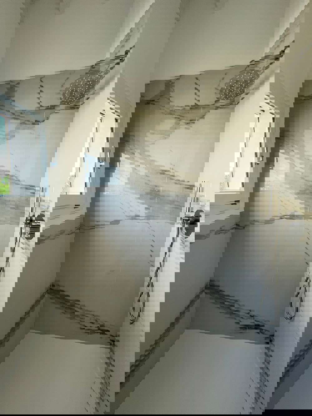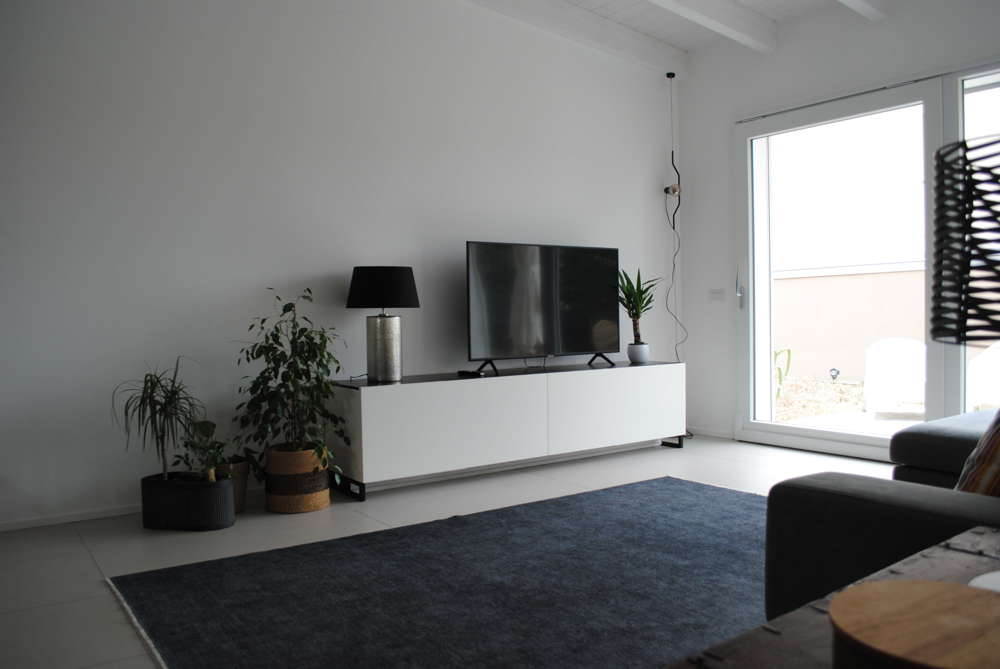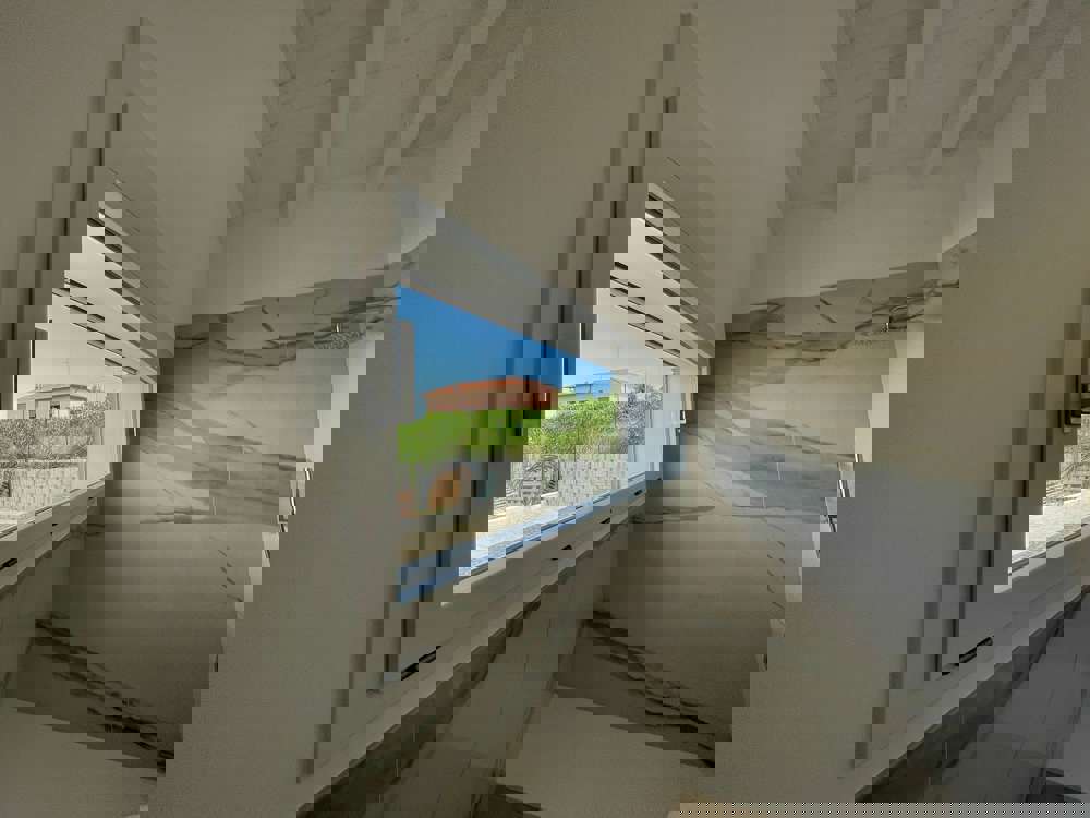 Seconda abitazione: si accede nell’ampia zona giorno con cucina a vista e accesso diretto al giardino di proprietà. Nella zona notte, camera matrimoniale, seconda camera e bagno padronale attentamente progettato.
