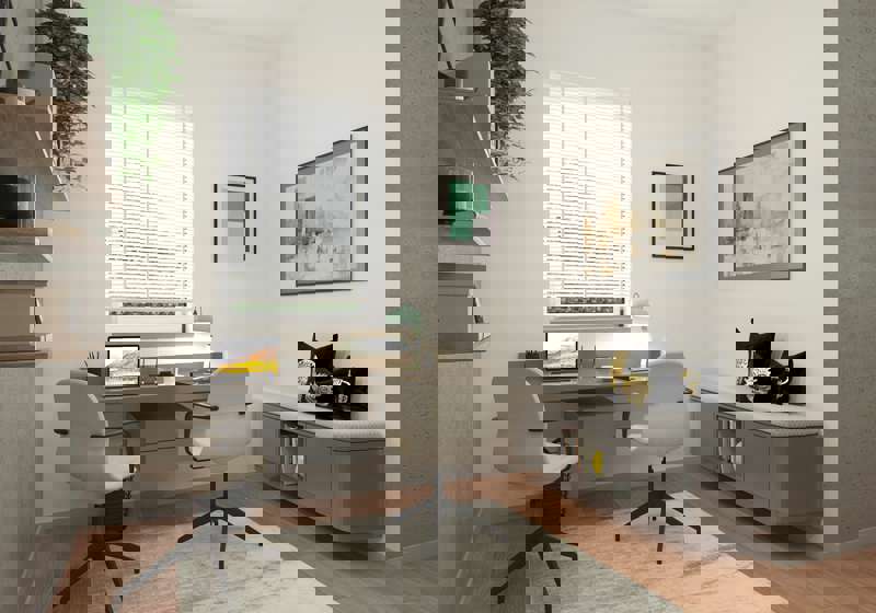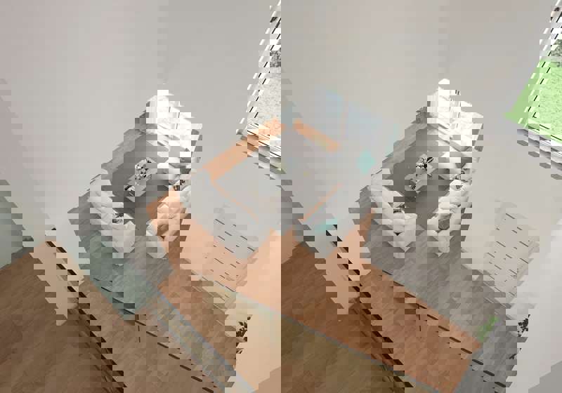 Piano terra: ingresso su ampio soggiorno con cucina a vista, disimpegno con accesso a box doppio con cantina/locale tecnico, studio luminoso e comodo bagno. Tutti sono direttamente connessi al vasto giardino esterno.