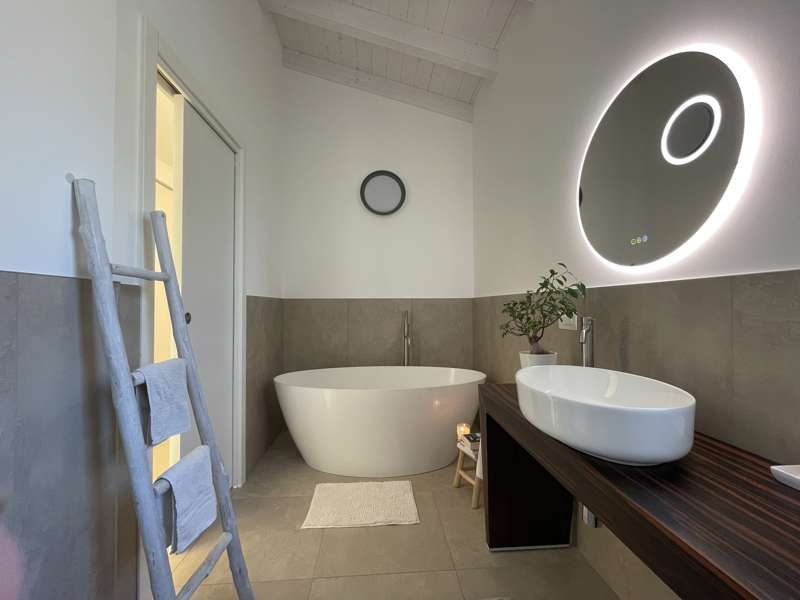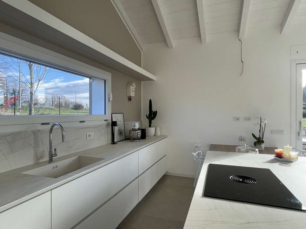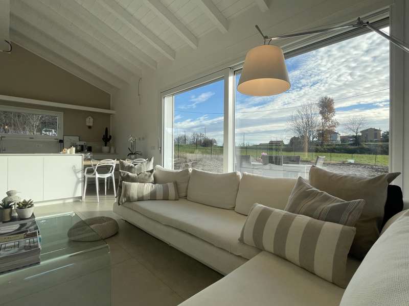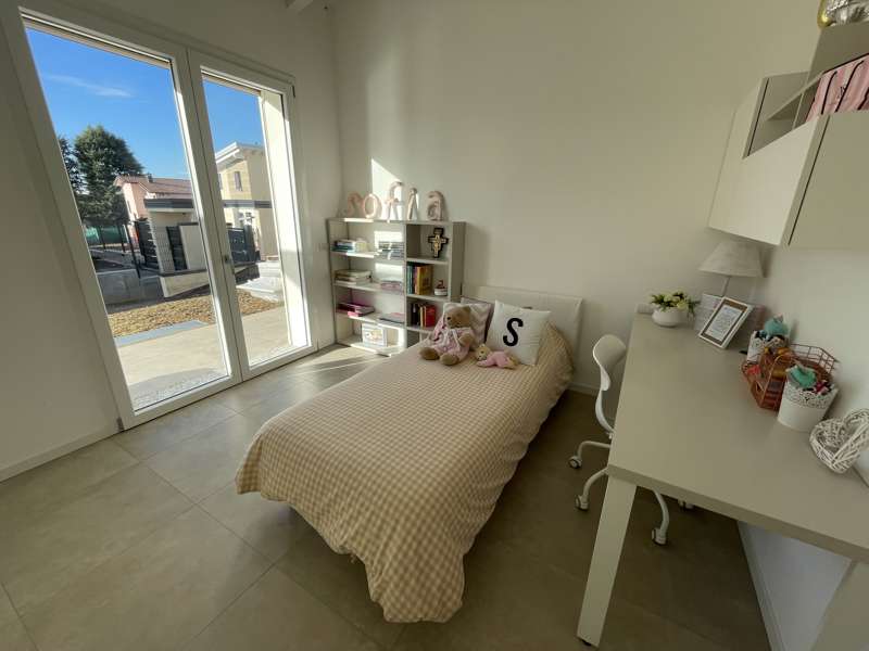 Piano unico: luminosa zona giorno open space con cucina a vista, sala da pranzo e salotto affacciati sul giardino circostante grazie alle ampie vetrate. Un comodo disimpegno conduce alla zona notte, composta da tre camere da letto, tra cui una spaziosa matrimoniale con bagno privato e cabina armadio. Completa la villa un secondo bagno una zona lavanderia e l’accesso diretto all’autorimessa doppia, collegata internamente all’abitazione.