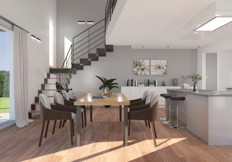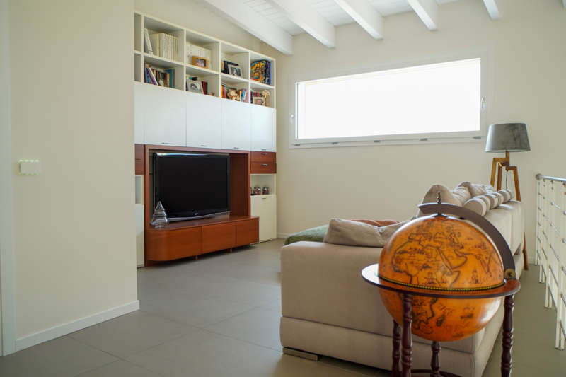 Vai al Virtual TourPiano terra: spaziosa zona giorno open space con cucina illuminata dalla luce naturale che filtra attraverso le ampie finestre, autorimessa con locale tecnico e lavanderia e secondo disimpegno (lato sinistro all’ingresso) con bagno e camera matrimoniale per gli ospiti.