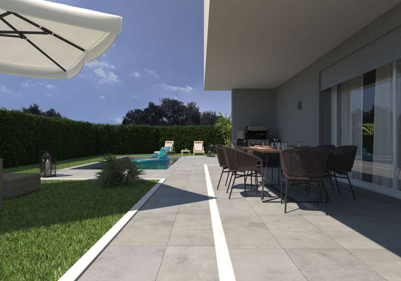 Spazi esterni: ampio giardino privato, piscina interrata per rilassarsi in totale privacy e portico, che si affaccia sulla piscina.