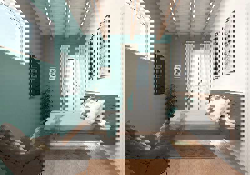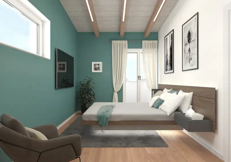Primo piano: due camere da letto spaziose e luminose, cabina armadio nella camera padronale e il bagno al piano dotato di ogni comfort.